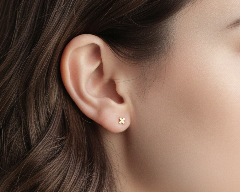 Nerūdijančio plieno auskarai pliuso / kryželio formos.